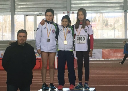 Destacar la actuación de las Alevines Sabrina el Himer 1ª de todas las series en 60ml con un registo de 9.10 su Mejor Marca Personal, Julia Blázquez fue 4ª en 60ml con 9.80 Mejor Marca Personal y Lola Mateos 20ª con 10.70 MMP, y ya en la Final de 60ml Julia finalizó en 6ª posición y Sabrina consiguió el Oro con nueva MMP de 9.00, éxito que repitió en la prueba de 1000ml con otro Oro y nueva MMP con un tiempo de 3:33.40. María Hernández fue 10ª con 4:07.70 en los 1000ml siendo su MMP, consiguiendo el Oro en Longitud con un salto de 3,38m también su MMP, donde fue acompañada en el Pódium por Julia Blázquez que finalizó 2ª con un salto de 3,35m consiguiendo la Plata.
