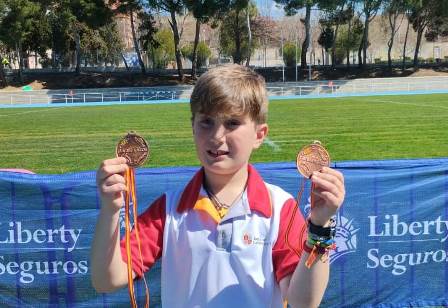 Nos complace y enorgullece, dar la noticia de que Nicolás Calvo, residente en la localidad de Crespos (Ávila) y que pertenece y entrena en nuestro Club de Atletismo, compitió con la Federación de Castilla y León, en la Jornada matinal del sábado día 18, consiguiéndose subirse al pódium para colgarse la Medalla de BRONCE en la prueba de 60ml con una marca de 11.76 MMP, Marca Personal, dentro la categoría Sub12 en la Clase T12, que es para los Atletas que tienen una discapacidad visual donde su campo de visión está restringido a un radio de menos de 5 grados o tienen la capacidad de reconocer un objeto en movimiento a una distancia de un metro. Además es una categoría competitiva para los Juegos Olímpicos.
