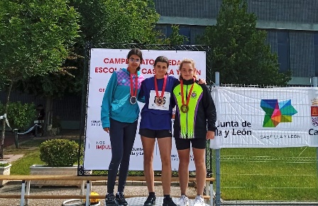 Ayer sábado día 20 de mayo, tuvo lugar en las Pistas de Río Esgueva de Valladolid, el Cto. Regional de Deporte en Edad Escolar, organizazo por la Junta de CyL y la Federación de Atletismo de CyL, y donde, a pesar de los problemas logísticos del autobús, y llegando muy justa para el calentamiento, pudiendo realizar dos lanzamientos solamente, la Atleta perteneciente a nuestro Club Leire Hernández participó en la prueba de Peso 3kg realizando un lanzamiento de 8,52m para finalizar 3ª y subirse al pódium colgándose una merecida Medalla de BRONCE, rematando la mañana junto con sus compañeras del equipo de la Selección Provincial de Salamanca proclamándose CAMPEONAS Autonómicas. .