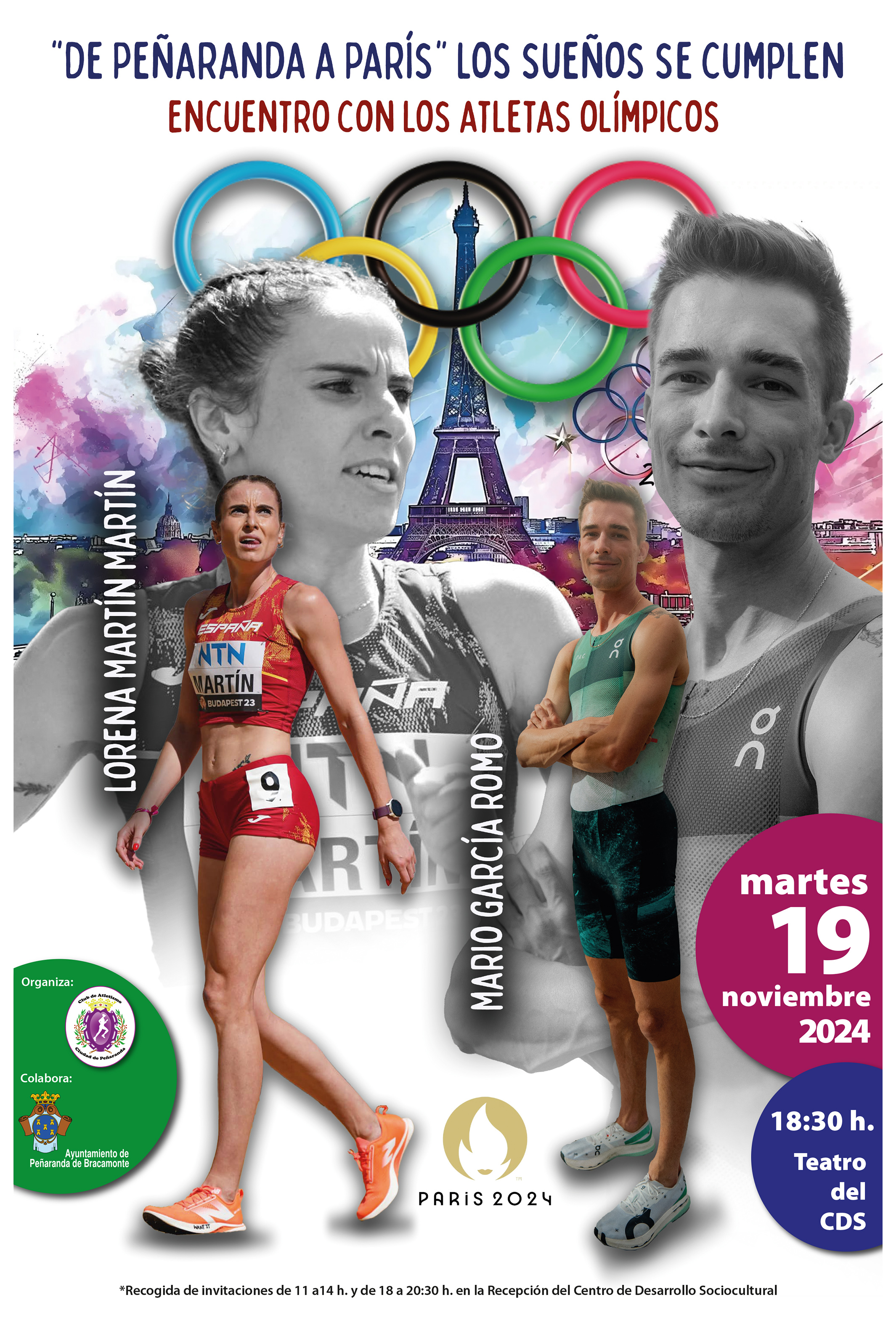 El Club de Atletismo "Ciudad de Peñaranda", en su Temporada de 15 Aniversario, junto con la colaboración del Ayuntamiento de Peñaranda, organizan el próximo martes 19 de noviembre a las 18:30h en el Teatro del CDS, un Encuentro con los Atletas Olímpicos de Peñaranda y la Comarca con el lema: "De PeÑaranda a París", Los Sueños se Cumplen. Donde estarán Lorena Martín y Mario García.