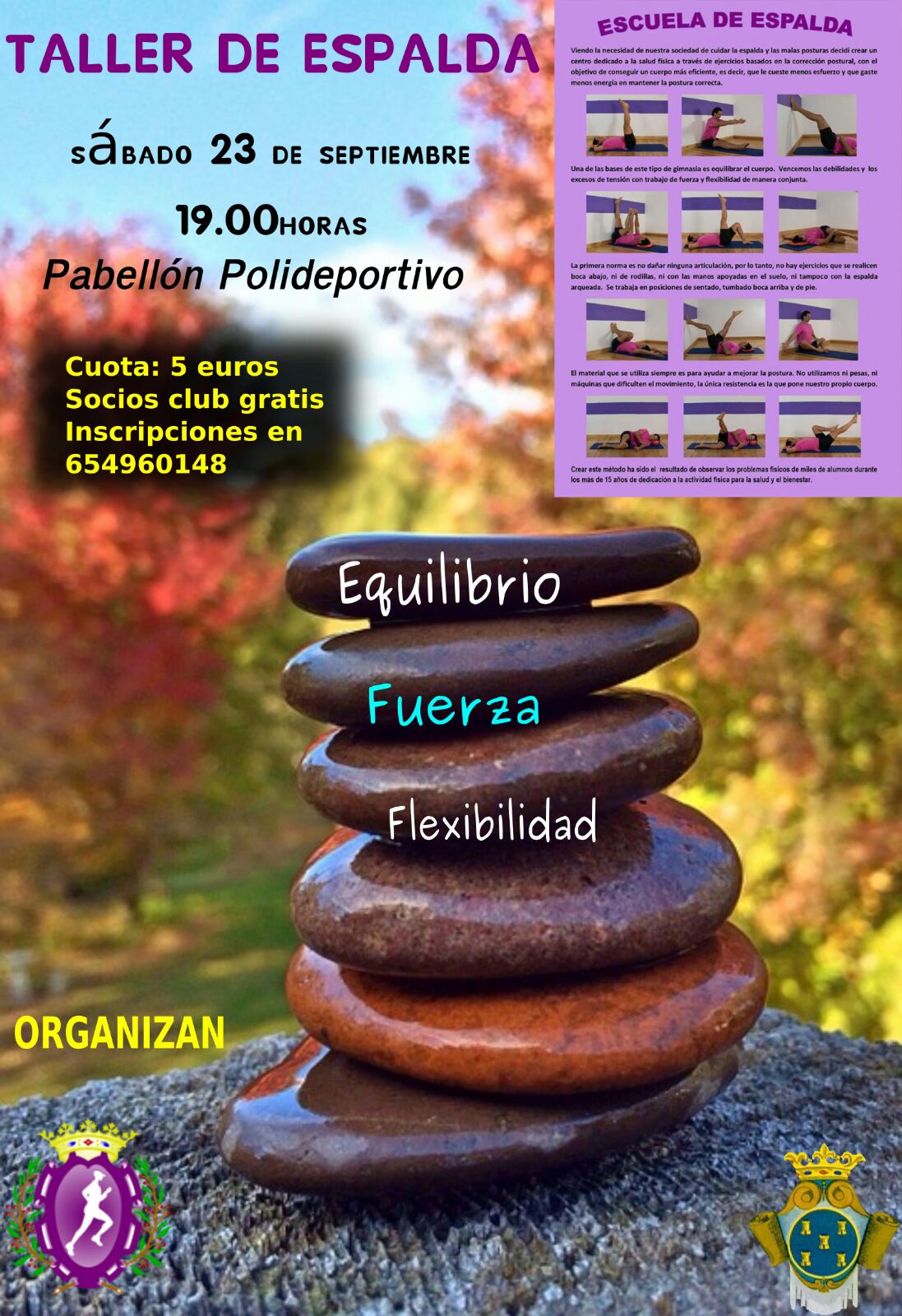 Y acto seguido, dentro del pabellón del Polideportivo tuvo lugar el Taller de Espalda donde se practicaron diversos ejercicios dedicados a la salud física y basados en la corrección postural para cuidar y corregir nuestra espalda, con una participación numerosa de 19 personas, donde Toni Cortes, con sus conocimientos, guió a todos en una magnífica clase.