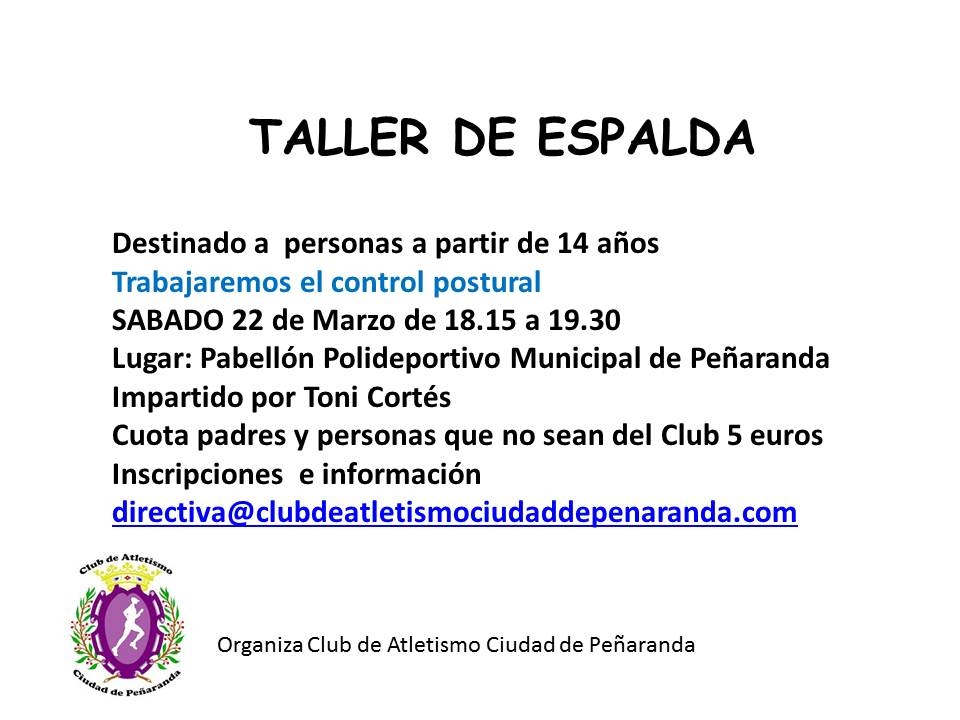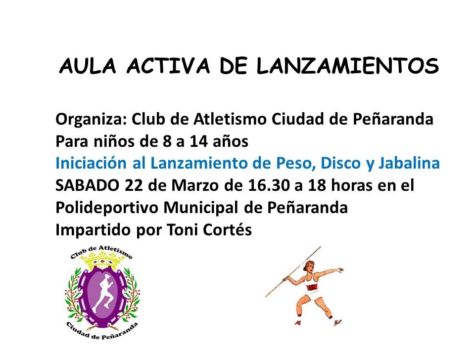 El Club de Atletismo "CIUDAD DE PEÑARANDA" Organizó el sábado día 22 de marzo por la tarde, de nuevo, dos de sus Actividades programadas para la Temporada. Impartidas por Toni Cortés, y que seguirá realizando cada mes, si es posible, para la diversión y aprendizaje de los más pequeños y para mejorar la salud de los adultos.