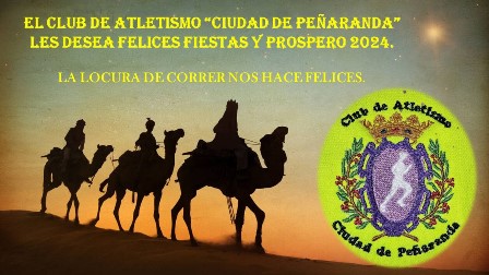 El Club de Atletismo "Ciudad de Peñaranda" os desea unas felices Fiestas en compañía de vuestros Familiares y Amigos, y un Próspero año 2024. Que venga cargado de éxitos Deportivos y que todos los objetivos planificados se hagan realidad. El esfuerzo de todo Atleta se ve recompensado.