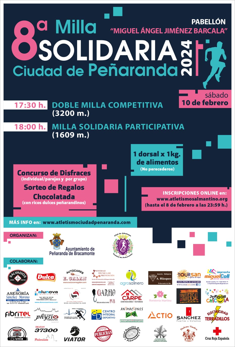 Un año más, el Club de Atletismo "Ciudad de Peñaranda" apuesta por la SOLIDARIDAD hacia el Banco de Alimentos de Peñaranda de Bracamonte, y así aportar tod@s su colaboración para las familias más necesitadas, con el slogan de "1 DORSAL x 1Kg de ALIMENTOS".