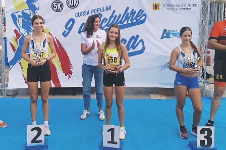 Esta misma mañana día 09 de octubre, en la distancia, tenía lugar la XXX edición de la Carrera 5km 10km 9 de octubre de Altea, en Alicante. Donde una de las Atletas del Club, que se encuentra de vacaciones por la zona, pudo competir en las carreras infantiles de su categoría. Concretamente en la categoría Cadete Sub16, sobre un recorrido de 1600m. Hablamos de Sofía Martín, la cual obtenía la victoria y se subía a lo más alto del pódium, recibiendo su merecido premio.