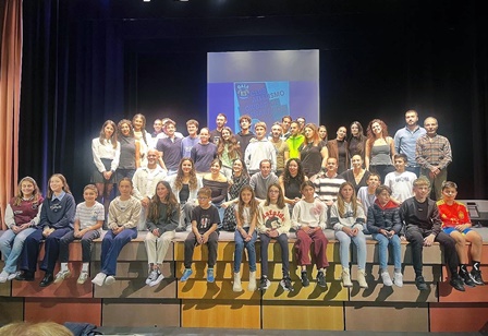 Finalizando la Gala 15 Aniversario del Club de Atletismo "Ciudad de Peñaranda" con una foto familiar y un ágape en el zaguan del Centro de Desarrollo Cultural.